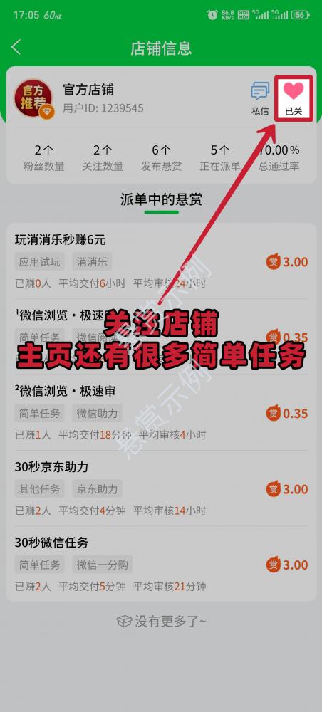 任务上方 关注商家 点击店铺 主页有很多简单任务