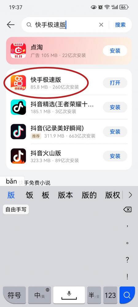 应用商店下载[快手极速版],手机号登录。