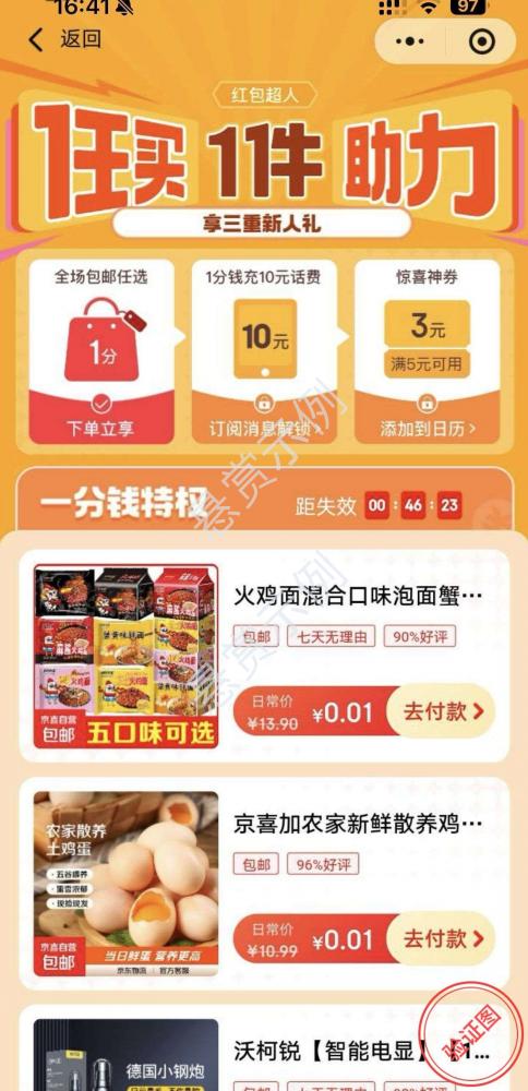 扫进去显示新用户,在此页面任选一件商品支付0.01。没有的就是老用户请放弃(必须是此页面下单)